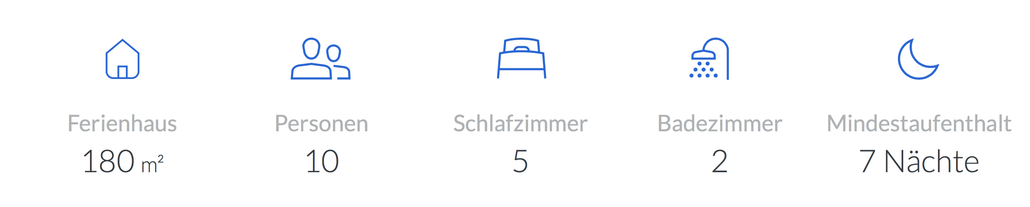 5 Schlafzimmer: 3 Doppelbetten und 4 Einzelbetten. Unteres Schlafzimmer mit eigenem Bad und WC. Ein oberes Schlafzimmer mit eigenem Waschtisch.