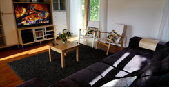 Großer offener Wohn- & Essbereich. Sofa, 2 Sessel, SONY 4K TV, Apple TV & PS3.